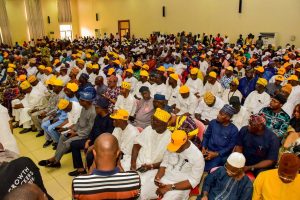 The hall hosted a complete roll call of the Ogun East APC structure: all 103 councillors; all ward chairmen and executives; all LG executive chairmen, past and present; serving and former members of the State and National Assembly; members of the Governor’s Advisory Council (GAC) and Elders Advisory Council; plus women and youth leaders.